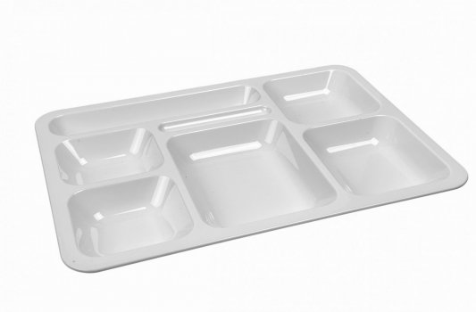 Блюдо для подачі з полікарбонату 6 секцій 40х28 см термостійкість -40 ... + 99 ° С прямокутне біле