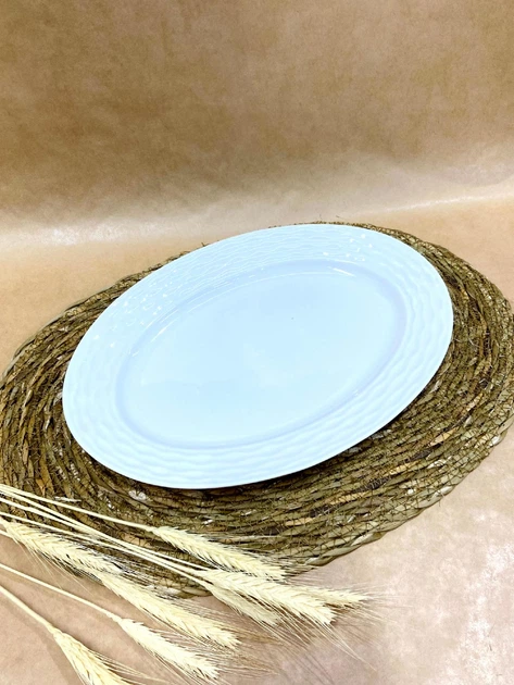 Тарілка велика блюдо Olens "Retro" 28 см кераміка блакитна овальна для дому та ресторанів
