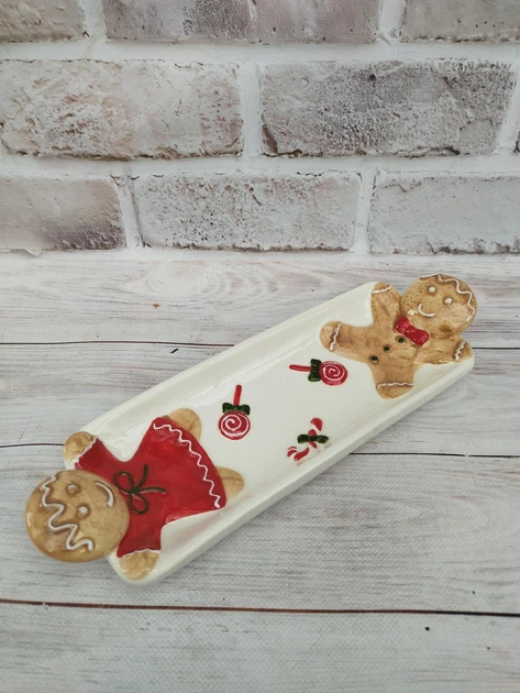 Блюдо сервірувальне новорічне BonaDi Веселі Пряники кераміка 31x10x4.5 см 834-374