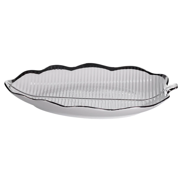 Порцелянове блюдо для сервірування столу у формі листа 31203 (см) Срібло ML6047