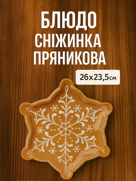 Блюдо керамическое «Снежинка пряниковая» 26232,5 см, праздничный дизайн, глянцевая глазурь, безопасная для еды, идеальна для