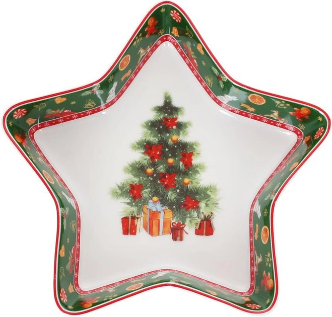 Блюдо в формі зірки Ялинка 17.5см, порцелянове, зелений (BD-498-287)