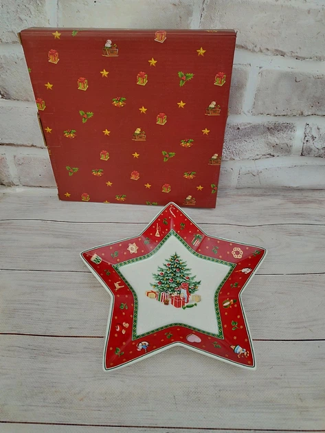 Блюдо сервірувальне новорічне Yiwu Christmas порцеляна в подарунковій коробці 25.5 см HP-SDHK-19