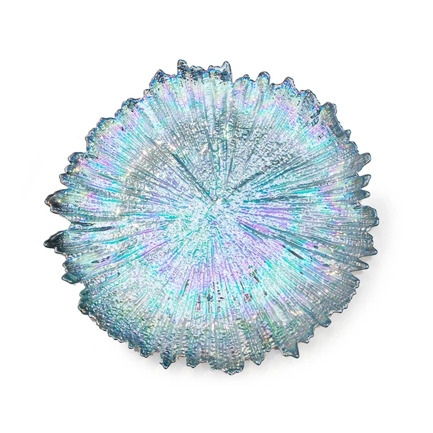 Блюдо сервірувальне Kaktus скляне блакитний перламутр 35 см