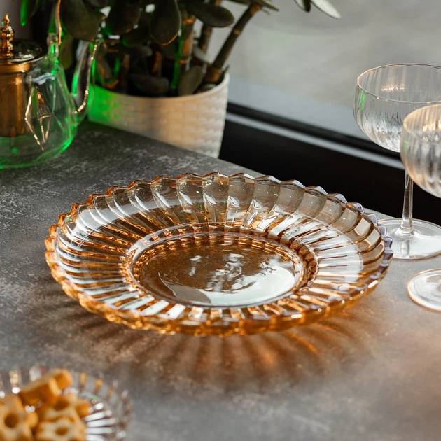 Блюдо сервірувальне Lirmatur Гофре скло 39 см золотистий