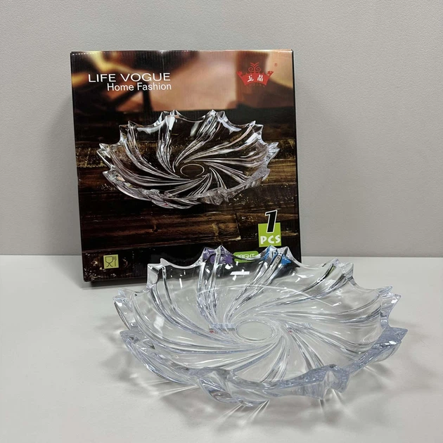 Блюдо скляне для цукерок, печива, фруктів 32 см Yujing GlassWare 3637/7091-2