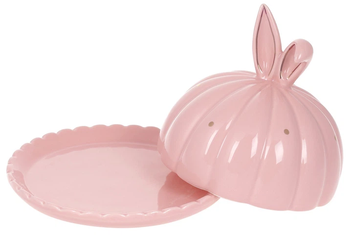 Блюдо керамічне з кришкою "Вушка", 18,7*18,7*15,3 см, колір рожевий
