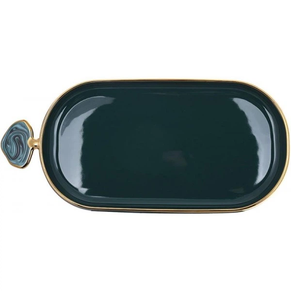 Блюдо фарфорове "Gold Line" 25.5х11.5см овальне з декоративною ручкою, зелене (249325)