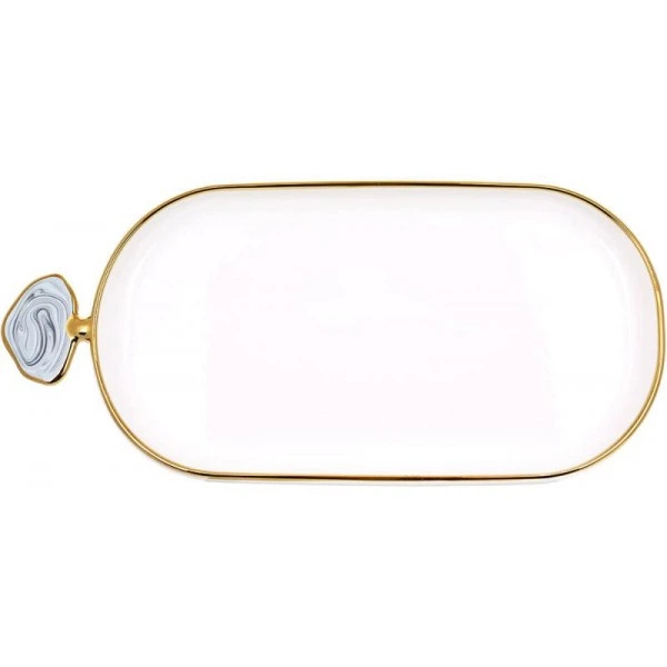 Блюдо фарфорове "Gold Line" 25.5х11.5см овальне з декоративною ручкою, біле (249323)