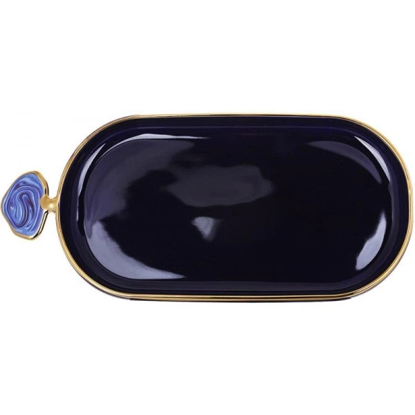Блюдо фарфорове "Gold Line" 25.5х11.5см овальне з декоративною ручкою, синє (249326)