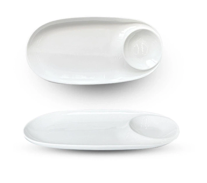 Блюдо фарфорове "Gold Line" 30.5х14см овальне з декоративною ручкою, біле (249327)