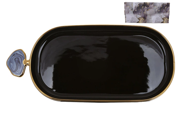 Блюдо овальне порцелянове Gold Line 30.5*14*2.5 см чорний 805-739