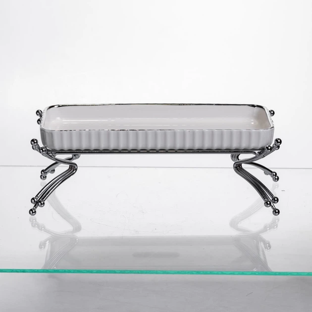 Порцелянове блюдо для сервірування на металевій підставці 37185 (см) блюдо для подачі закусок Білий зі сріблом LB-1566S