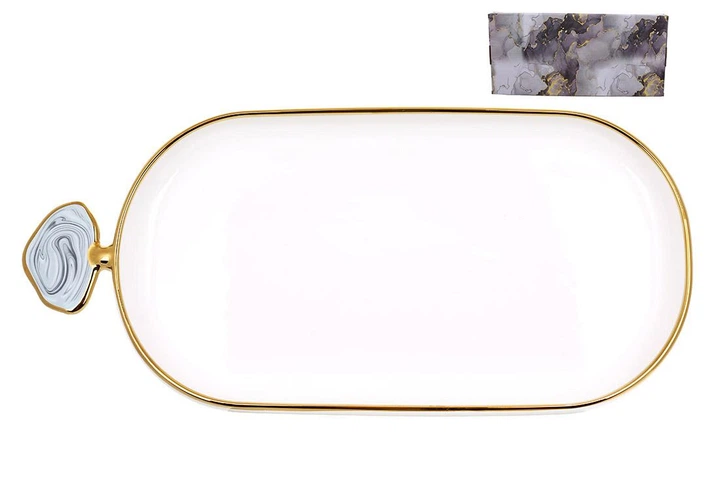 Блюдо овальне порцелянове Gold Line 30.5*14*2.5 см білий 805-738