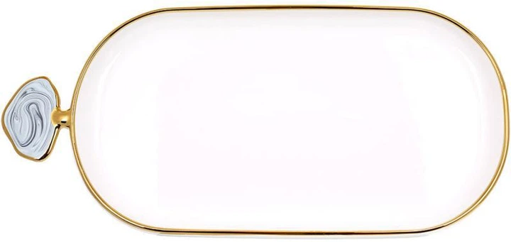 Блюдо фарфорове "Gold Line" 30.5х14см овальне з декоративною ручкою, біле