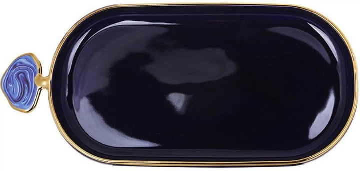 Блюдо фарфорове "Gold Line" 30.5х14см овальне з декоративною ручкою, синє