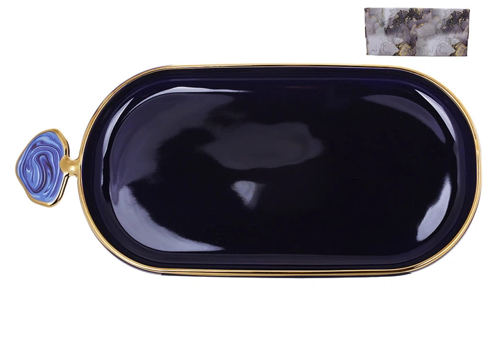 Блюдо овальне порцелянове Gold Line 30.5*14*2.5 см синій 805-741