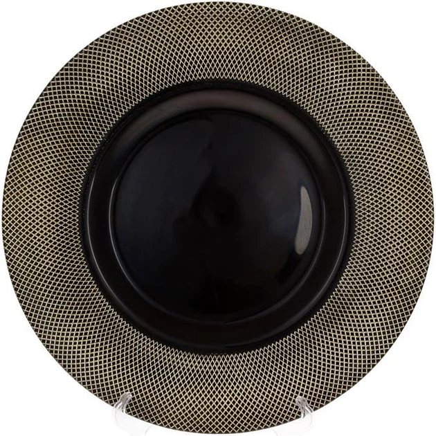 Блюдо сервірувальне 33см, підставна тарілка, скло, чорний з золотом (BD-587-034)