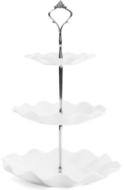 Блюдо фуршетна стійка "White City Хвиля" 3 ярусу 15 + 20 + 25см, висота 36см