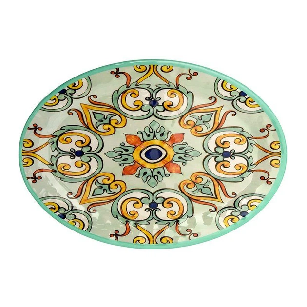 Блюдо овальне з меламіну бірюзового кольору з орнаментом Medicea Brandani