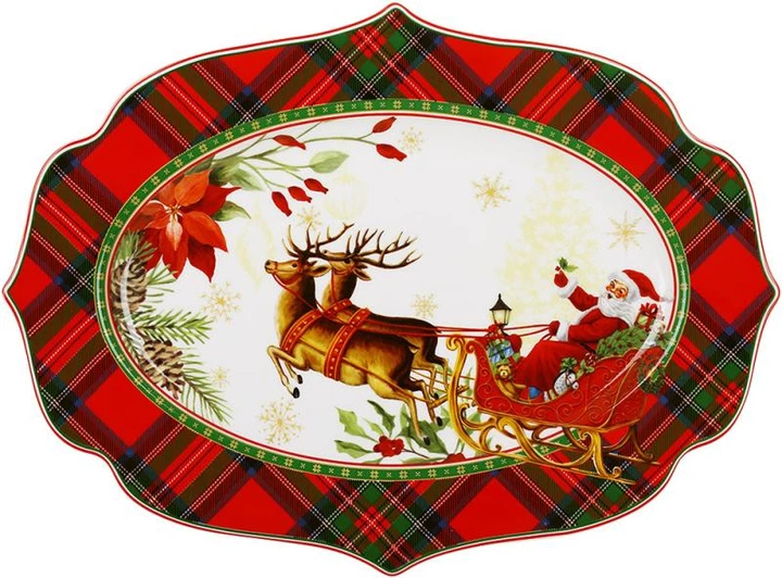 Блюдо порцелянове Christmas Story 35х25см, овальне, білий з червоним (BD-149-042)