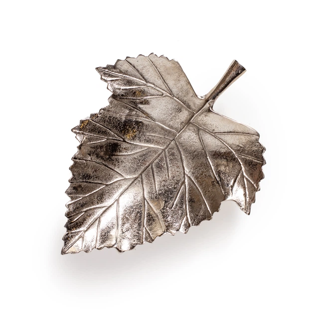 Блюдо декоративне алюмінієве Kaktus Кленовий лист М срібло 30х24х6 см