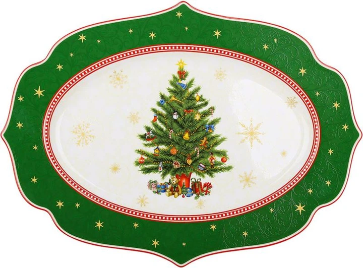 Блюдо порцелянове Christmas Story 35х25см, овальне, зелений з білим (BD-149-048)