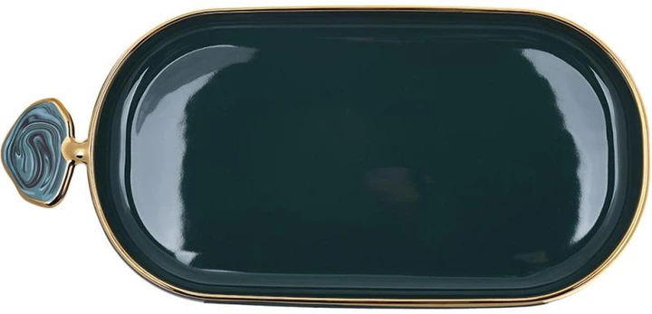 Блюдо порцелянове Gold Line 36х16.5см овальне з декоративною ручкою, зелене (BD-805-744)