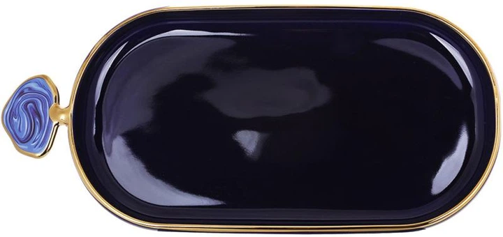 Блюдо порцелянове Gold Line 36х16.5см овальне з декоративною ручкою, синє (BD-805-745)