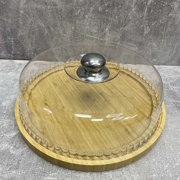 Блюдо для торта бамбукове з пластиковою кришкою Interos PJ02717