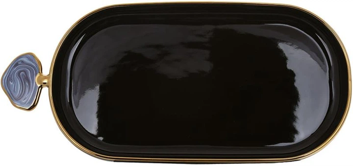 Блюдо порцелянове Gold Line 36х16.5см овальне з декоративною ручкою, чорне (BD-805-743)