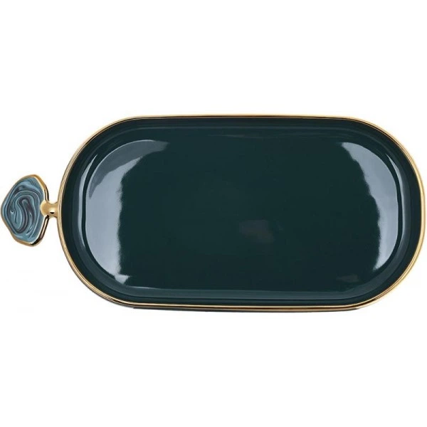 Блюдо фарфорове "Gold Line" 36х16.5см овальне з декоративною ручкою, зелене (249333)