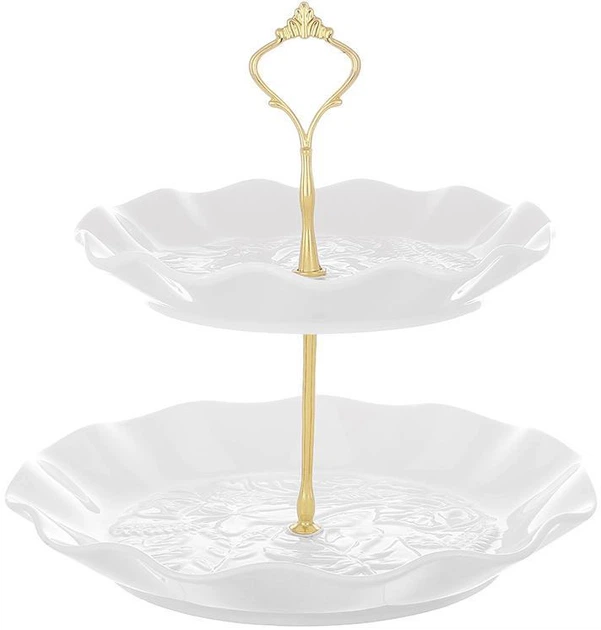 Блюдо фуршетна стійка "White City Монстера" 2-х ярусна 22/27см, біла фарфор
