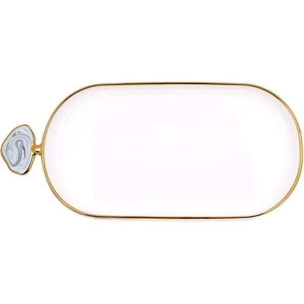Блюдо фарфорове "Gold Line" 36х16.5см овальне з декоративною ручкою, біле (111398)