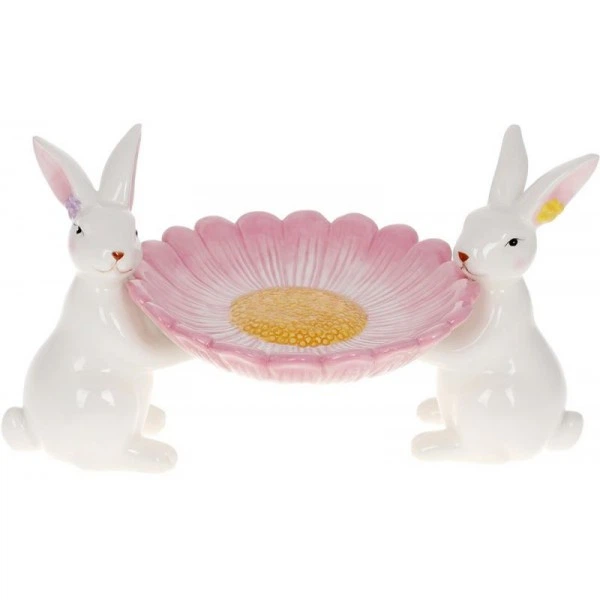 Блюдо керамічне "Мілі Кролики" 25.5см, білий з рожевий (5148)