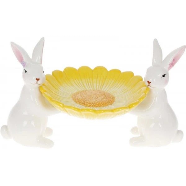 Блюдо керамічне "Мілі Кролики" 25.5см, білий з жовтим (5147)