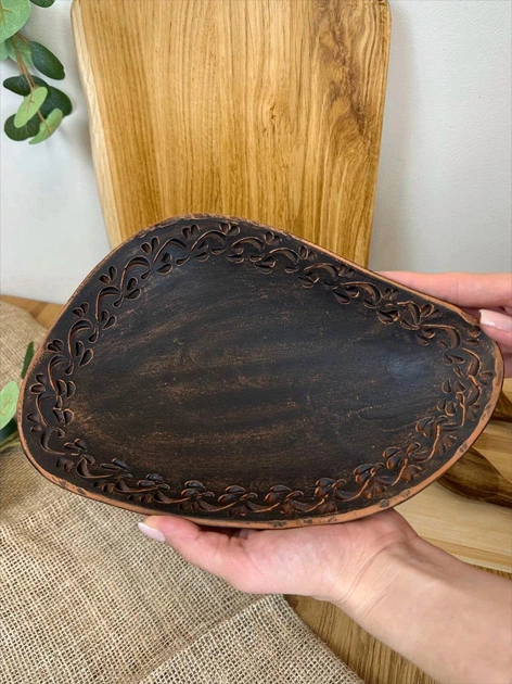 Блюдо овальне 1 літр керамічне (глиняне) різьблене Декор