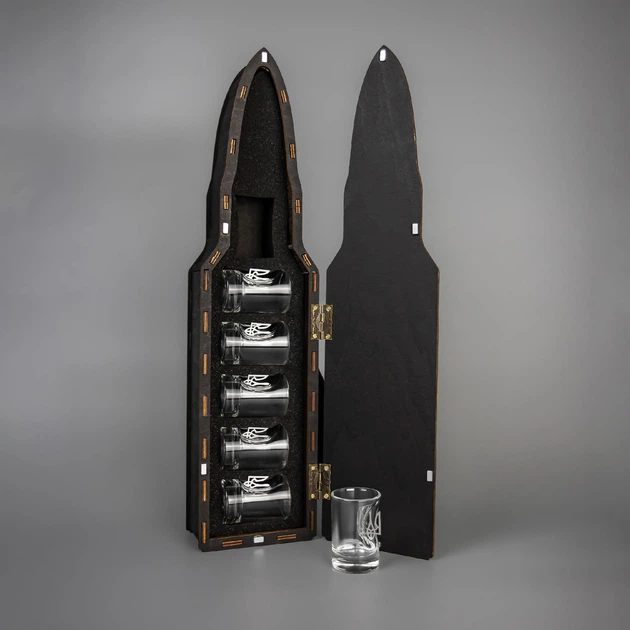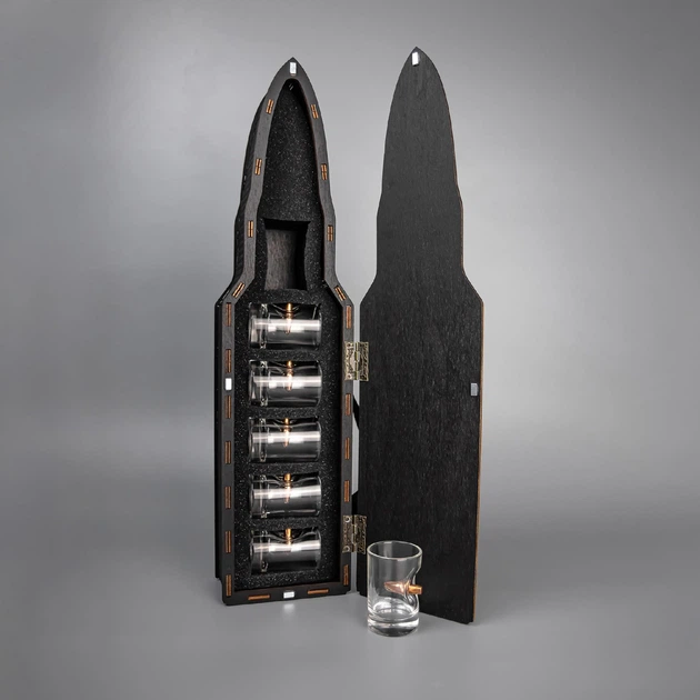 Чарки з кулею у формі черепа 6 шт | Дерев'яна подарункова упаковка 225-001-062
