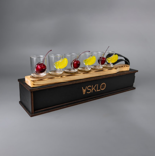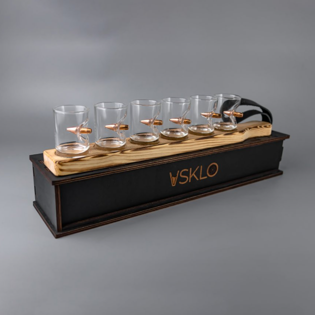 Чарки з кулею у формі черепа 6 шт | Дерев'яна подарункова упаковка 225-001-062