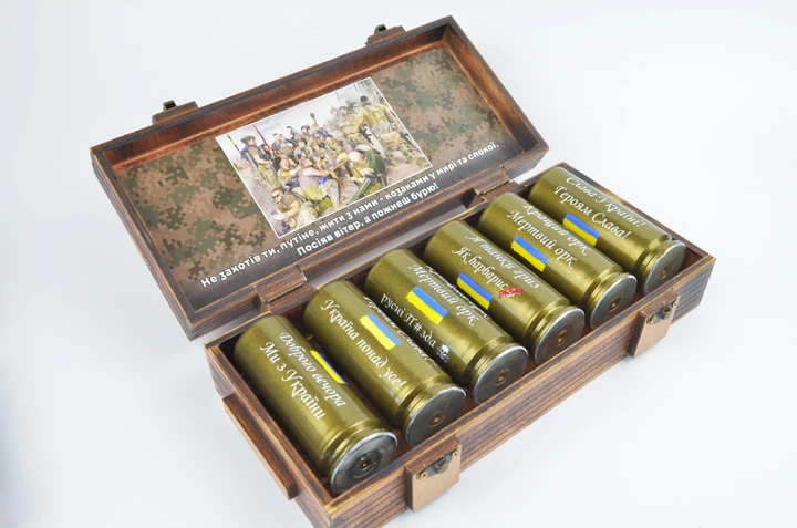 Чарки з гільз для віскі з патріотичними написами 6 штук із збереженим оригінальним станом 212-000-008