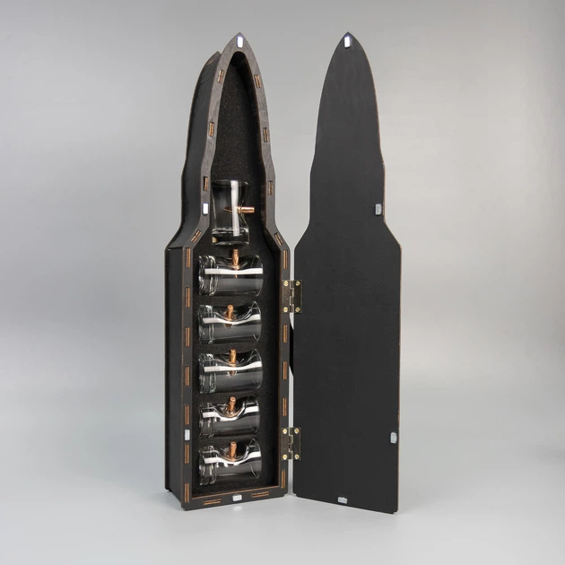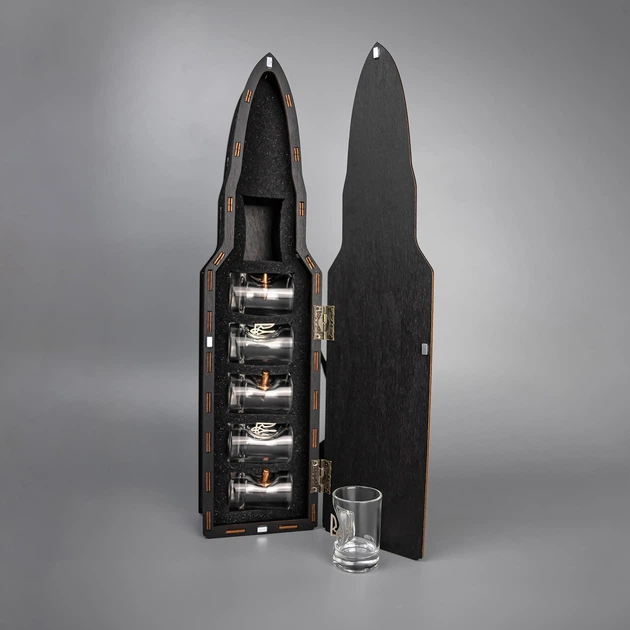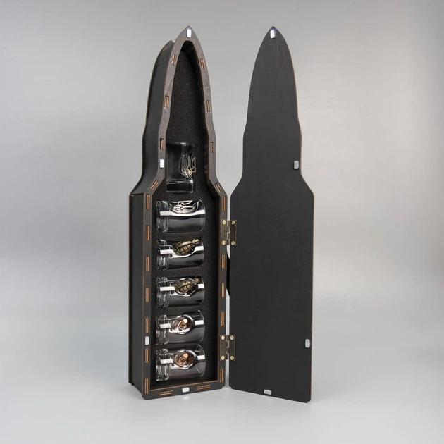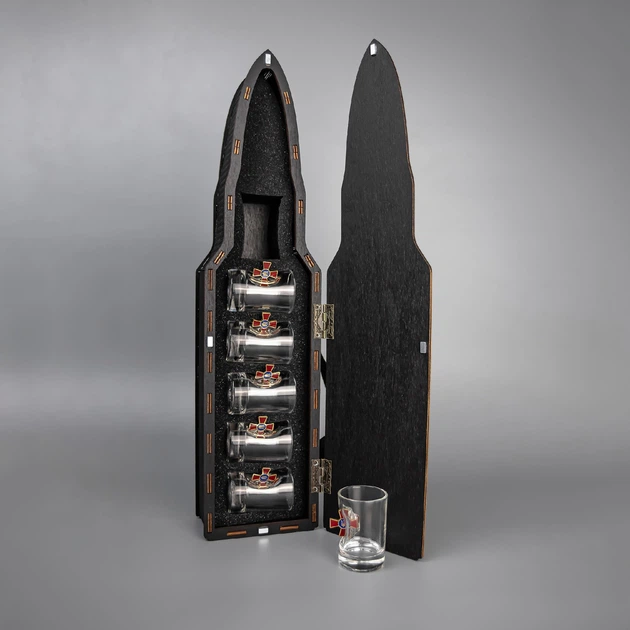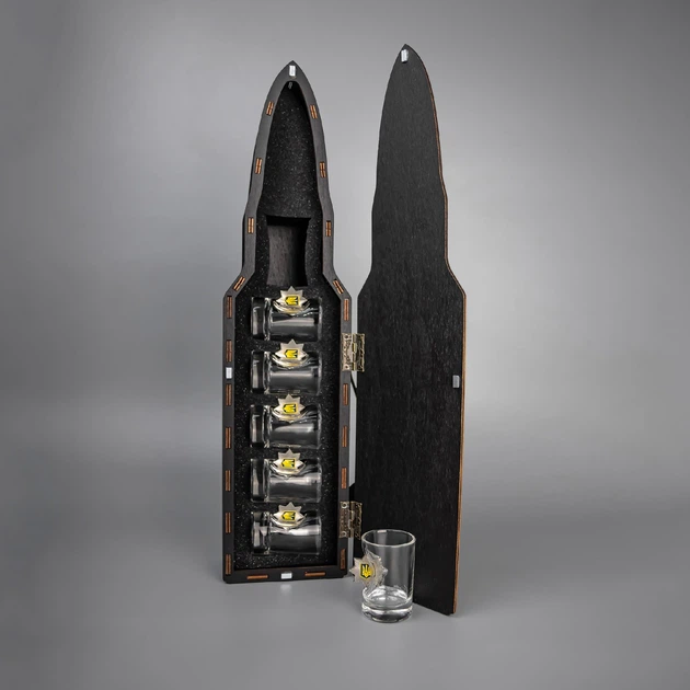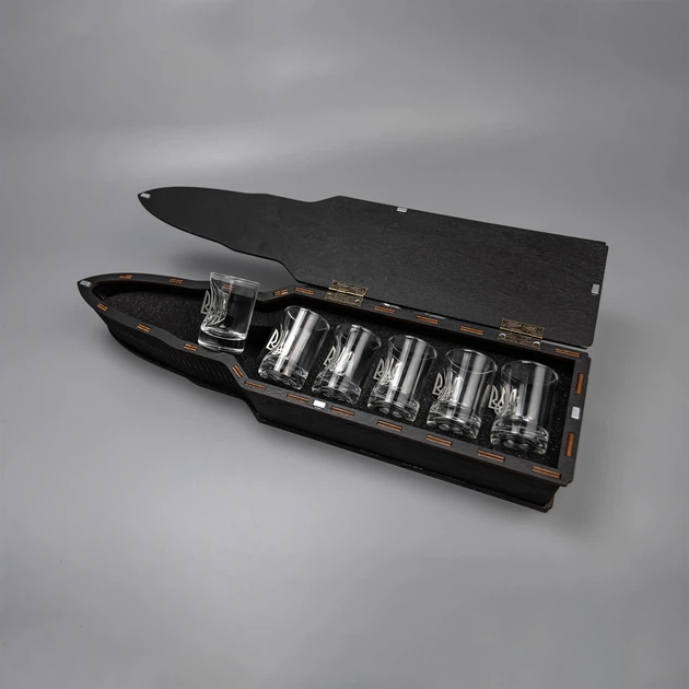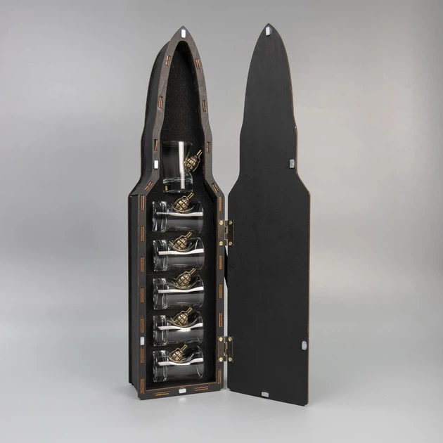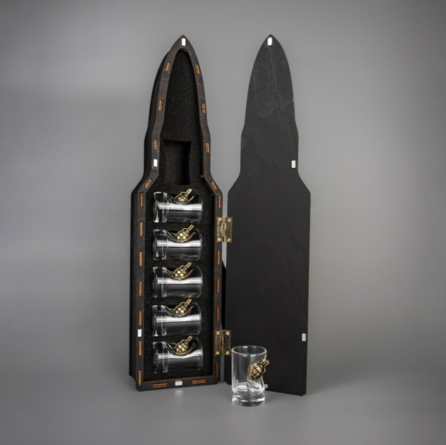 Набір чарок з кулею, гербом та лимонкою | Дерев'яна упаковка 225-001-035