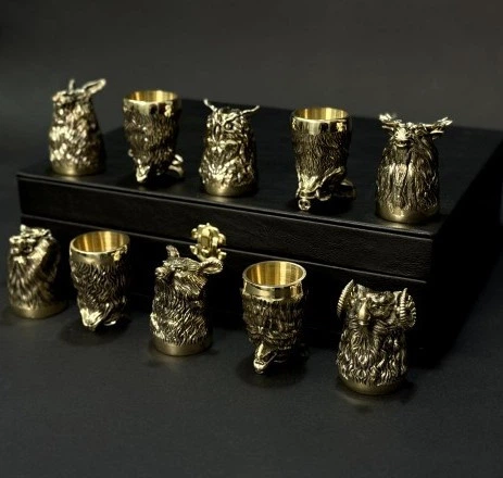 Набір чарок із бронзи "Мисливські" 10 шт (pn39)