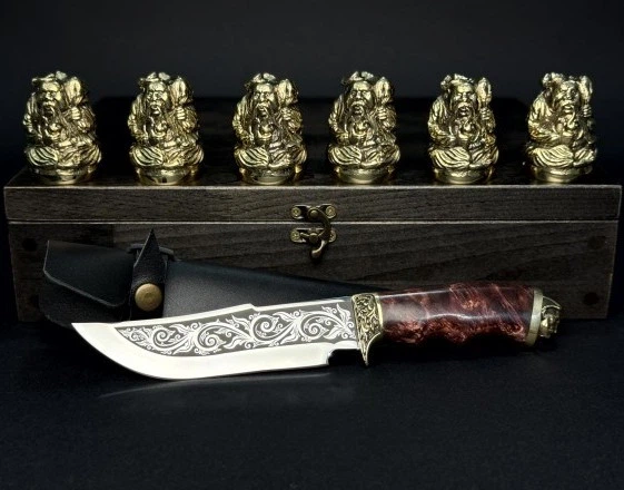 Набір чарок із бронзи "Мисливські" 6 шт з ножем (pn19)