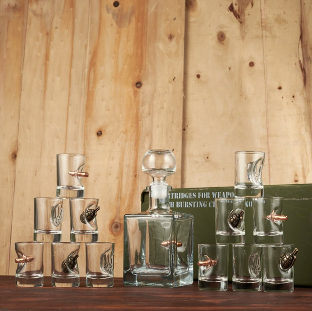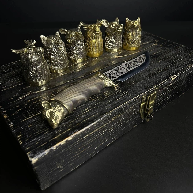 Набор рюмок ручной работы в боксе Охотничьи 6 R плюс нож