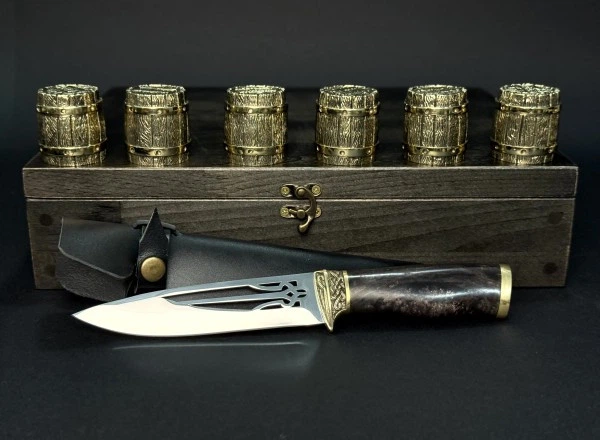 Набір "Козацька рада" 6 чарок з ножем у кейсі з натурального дерева бук