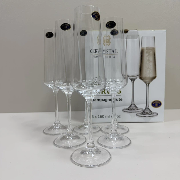 Набір келихів для шампанського 6 шт 160 мл h-24.5 см, d-6.5 см Corvus Crystal Bohemia b1SC69