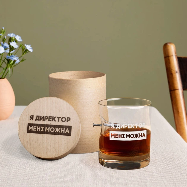 Склянка із цвяхом "Я директор мені можна" у тубусі зі шпону