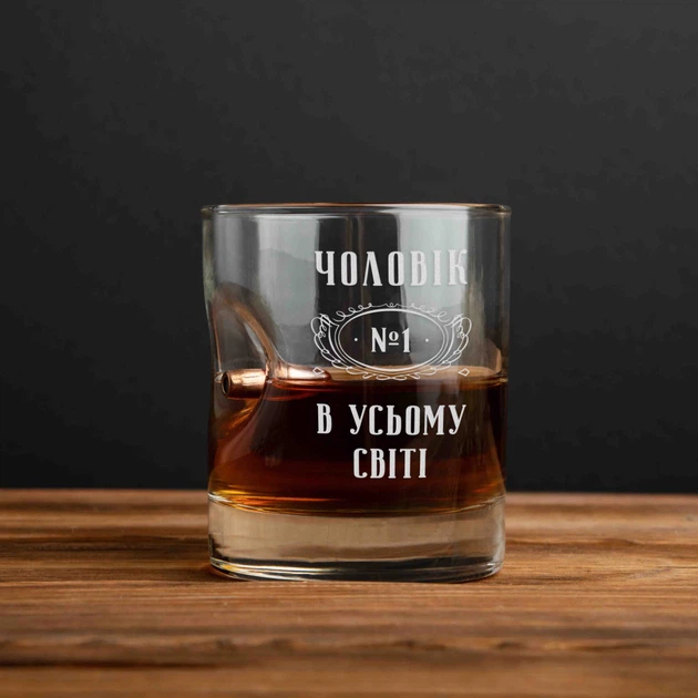Склянка з кулею "Чоловік №1 у всьому світі" для віскі, українська, Дерев'яна подарункова коробка 4602292