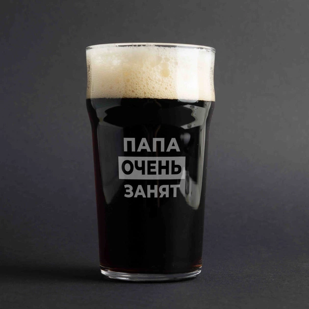 Келих для пива "Папа очень занят" у дерев'яній подарунковій коробці