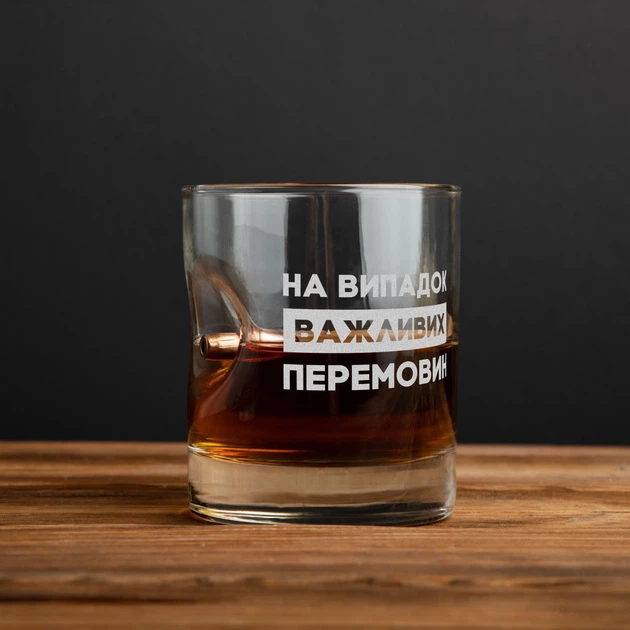 Склянка з кулею "На випадок важливих перемовин" у дерев'яній подарунковій коробці з гравіюванням 4602247